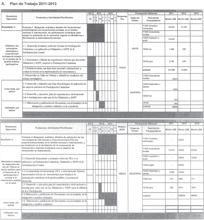 Una vez instaladas las nuevas autoridades de gobierno en marzo del 2010 y definidas las prioridades para el período 2010-2014 se adecuaron los resultados y productos del proyecto inicial a las necesidades y nuevo contexto existente en el país manteniendo el enfoque inicial de colaboración entre PNUD y MSGG en lo relativo a la participación ciudadana en procesos de políticas públicas.