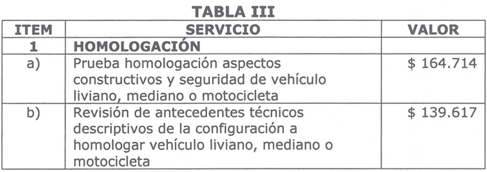 Artículo 5º: Agrégase a continuación del numeral 4 el siguiente numeral: "5.- Los valores por servicios de homologación y certificación vehicular mencionados en numerales anteriores no serán aplicables a vehículos con motor a gas, motor dual, tracción híbrida y/o eléctrica.".