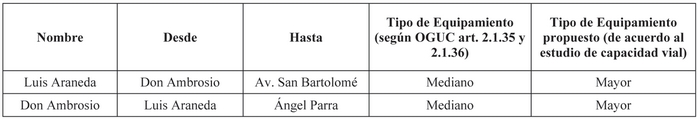 Artículo 8.- Equipamiento. Se aceptan equipamientos de mayor escala en las vías colectoras, que se indican a continuación, de acuerdo a lo señalado en el cuadro siguiente:
