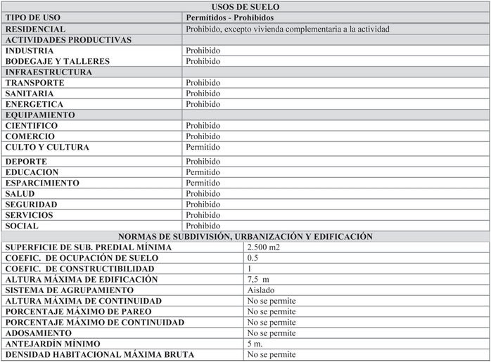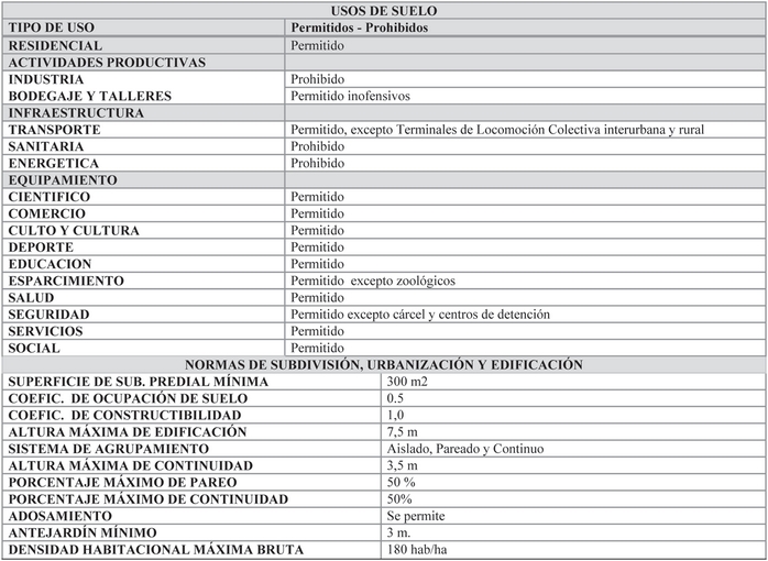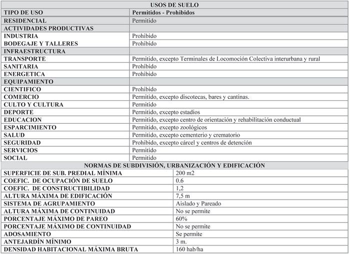 Artículo 12.- Zonificación. El presente Plan Regulador Comunal comprende las siguientes zonas, graficadas en el Plano PRCHV, siendo sus normas urbanísticas las que se indican a continuación: