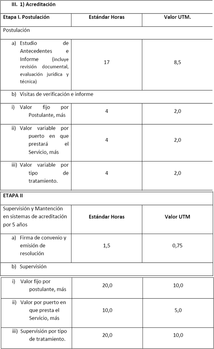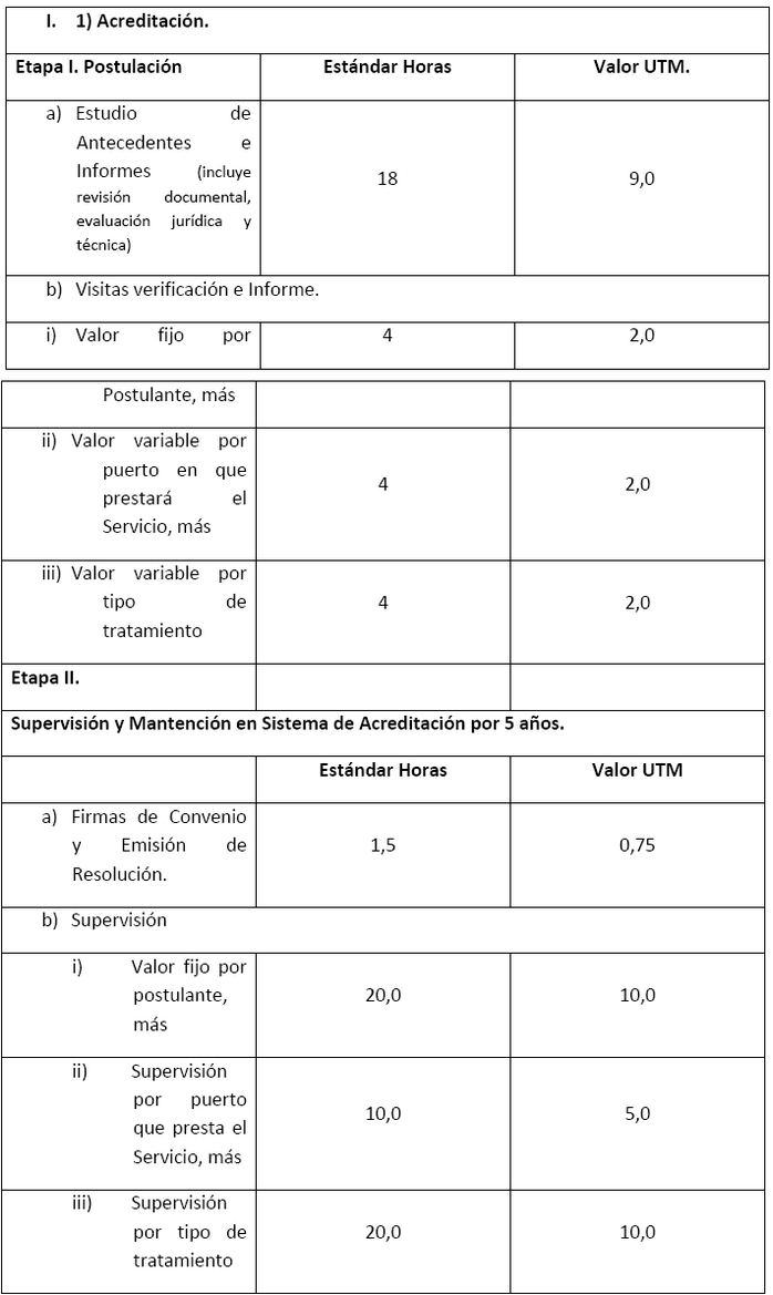 3° Para el caso de renovación de Acreditaciones, el usuario pagará el equivalente a 1,0 hora funcionaria, 0,5 UTM por la Etapa I.a), Estudio de antecedentes e informes; y lo estipulado en la Etapa II, del N° 1 de la presente resolución, si es aprobada dicha renovación, para persona natural y jurídica, según corresponda.