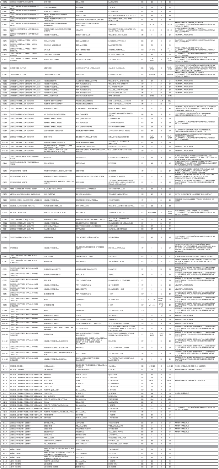 La Vialidad Estructurante del área urbana de Viña del Mar es la conformada por las vías que se identifican en el Listado de Vialidad Estructurante que se incluye a continuación y que se encuentran graficadas en el Plano PR-VM-03A Vialidad Estructurante: