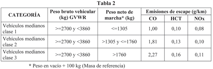 b) Los límites señalados en la Tabla 2 siguiente, son aplicables a vehículos cuyo motor utilice gasolina, gas natural o gas licuado de petróleo como combustible. Se deberá acreditar que dichos vehículos están construidos de manera de cumplir con los límites señalados para una durabilidad de 80.000 kilómetros (km) de uso, y después de transcurridos 12 meses contados desde la fecha de publicación en el Diario Oficial del DS Nº 28 de 2012, del Ministerio del Medio Ambiente, deberá acreditarse lo mismo, esta vez para una durabilidad de 100.000 kilómetros (km), conforme a lo dispuesto en el número 3º del decreto supremo Nº 54 de 1997 del Ministerio de Transportes y Telecomunicaciones, que dispone normas sobre homologación de vehículos.