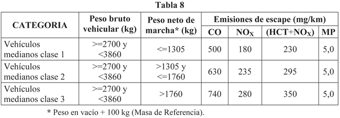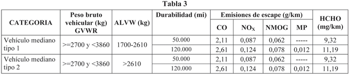 c) Los límites señalados en la Tabla 3 siguiente, serán aplicables a vehículos cuyo motor utilice diesel como combustible.