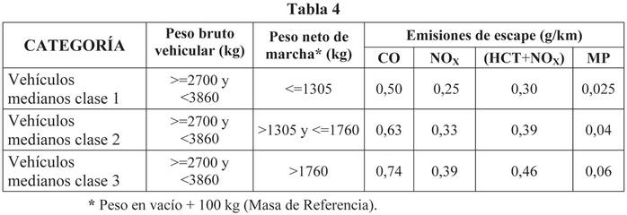 d) Los límites señalados en la Tabla 4 siguiente, serán aplicables a vehículos cuyo motor utilice diesel como combustible. Se deberá acreditar que dichos vehículos están construidos de manera de cumplir con los límites señalados para una durabilidad de 80.000 kilómetros (km) de uso y después de transcurridos 12 meses contados desde la fecha de publicación del DS Nº 28 de 2012, del Ministerio del Medio Ambiente, en el Diario Oficial, deberá acreditarse lo mismo, esta vez para una durabilidad de 100.000 kilómetros (km), conforme a lo dispuesto en el número 3º del decreto supremo Nº 54 de 1997, del Ministerio de Transportes y Telecomunicaciones, que dispone normas sobre homologación de vehículos.