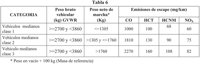 b) Los límites señalados en la Tabla 6 siguiente, serán aplicables a vehículos con motor de encendido por chispa. Se deberá acreditar que dichos vehículos están construidos de manera de cumplir con los límites señalados para una durabilidad de 160.000 kilómetros (km) de uso, conforme a lo dispuesto en el número 3º del decreto supremo Nº 54 de 1997, del Ministerio de Transportes y Telecomunicaciones, que dispone normas sobre homologación de vehículos.