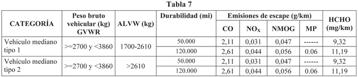 a) La durabilidad, expresada en millas, para cada conjunto de emisiones de escape, señalado en la Tabla 7 deberá ser acreditada conforme a lo dispuesto en el número 3º del decreto supremo Nº 54 de 1997 del Ministerio de Transportes y Telecomunicaciones, que dispone normas sobre homologación de vehículos.