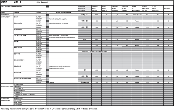 2.- Apruébese la modificación a la tabla, relativa a las condiciones urbanísticas del artículo 74, Título V, Capítulo I, de la Ordenanza Local del Plan Regulador Comunal de La Serena, correspondientes a las zonas ZC-8, con la correspondiente modificación incorporada, y reemplácese la actualmente existente en la Ordenanza Local del Plan Regulador, por la aprobada mediante el presente decreto alcaldicio.