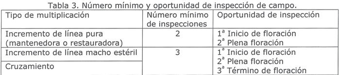 6.7. Los semilleros bajo certificación serán inspeccionados durante el período de floración según lo indicado en la Tabla 3.