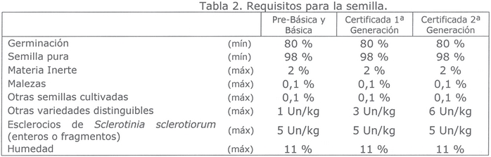 7. Requisitos de la semilla.