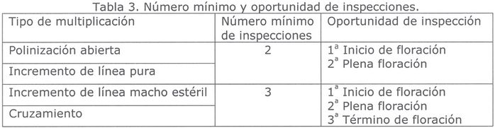6.7. Los semilleros bajo el proceso de certificación serán inspeccionados durante el período de floración, según lo indicado en la Tabla 3.