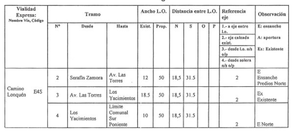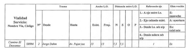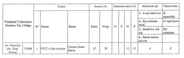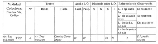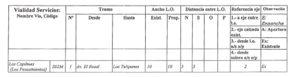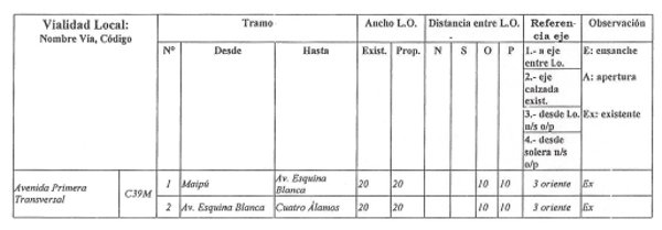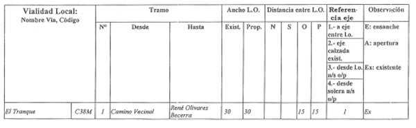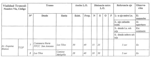 Artículo 51º, cuadro vialidad Troncal Vía T12P