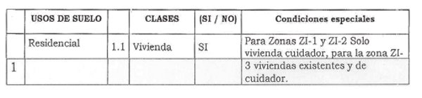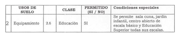 1.3.3.3 Agréguese en columna de usos permitidos y