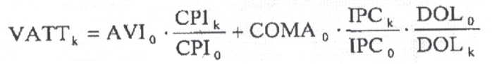 De acuerdo a lo especificado en las Bases, el VATT de la empresa adjudicataria se reajustará anualmente, en dólares de los Estados Unidos de América, según la siguiente fórmula de indexación, de acuerdo a la variación de sus componentes AVI y COMA: