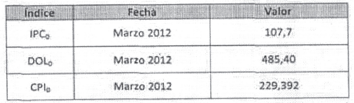 En consecuencia, los valores base para los índices antes definidos corresponden a los que a continuación indican: