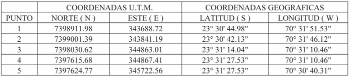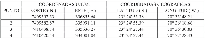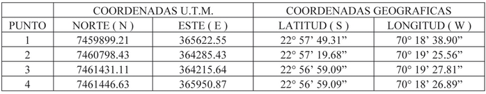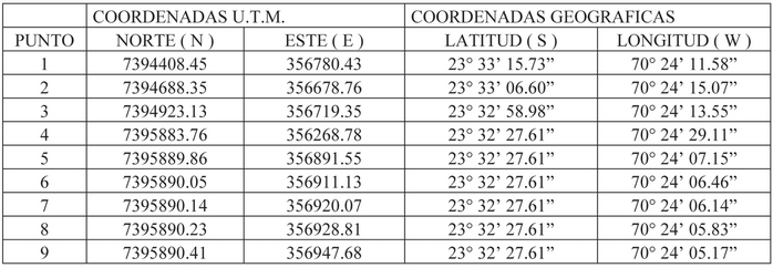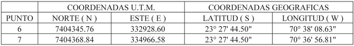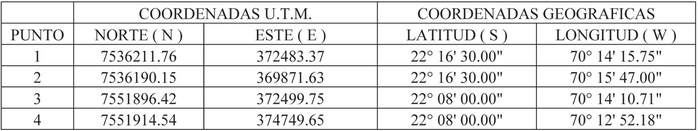 "Declárase que se considerarán como excluidos para el ejercicio de la acuicultura, los terrenos de playa fiscales, playas de mar, las rocas y las porciones de agua y fondo, adyacentes al Monumento Natural La Portada, situadas entre las latitudes 23º30'20,89" S y 23º30'25,89" S, graficadas en el plano II-08-SSP, referido en Datum WGS-84, prolongándose desde la línea de más alta marea hacia el Weste, hasta una distancia de una milla náutica".