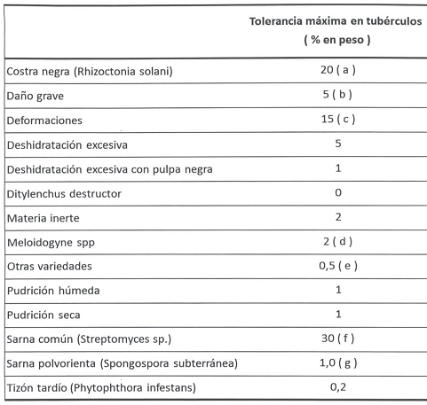 11. Las tolerancias máximas para los tubérculos, expresadas en porcentaje en peso, serán las siguientes: