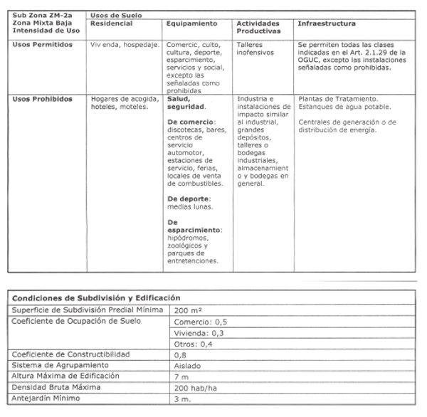 Sub Zona ZM - 2a: Zona Mixta Baja Intensidad de Uso.
