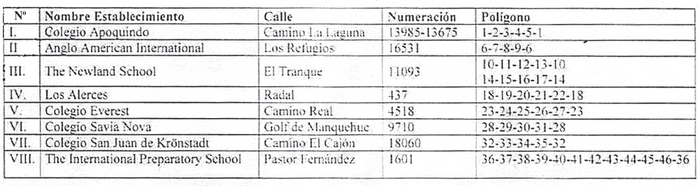 a.- Intercálese en el listado de zonas del artículo 54, entre las Zonas D y F el siguiente texto: Zona E "Equipamiento Educacional".