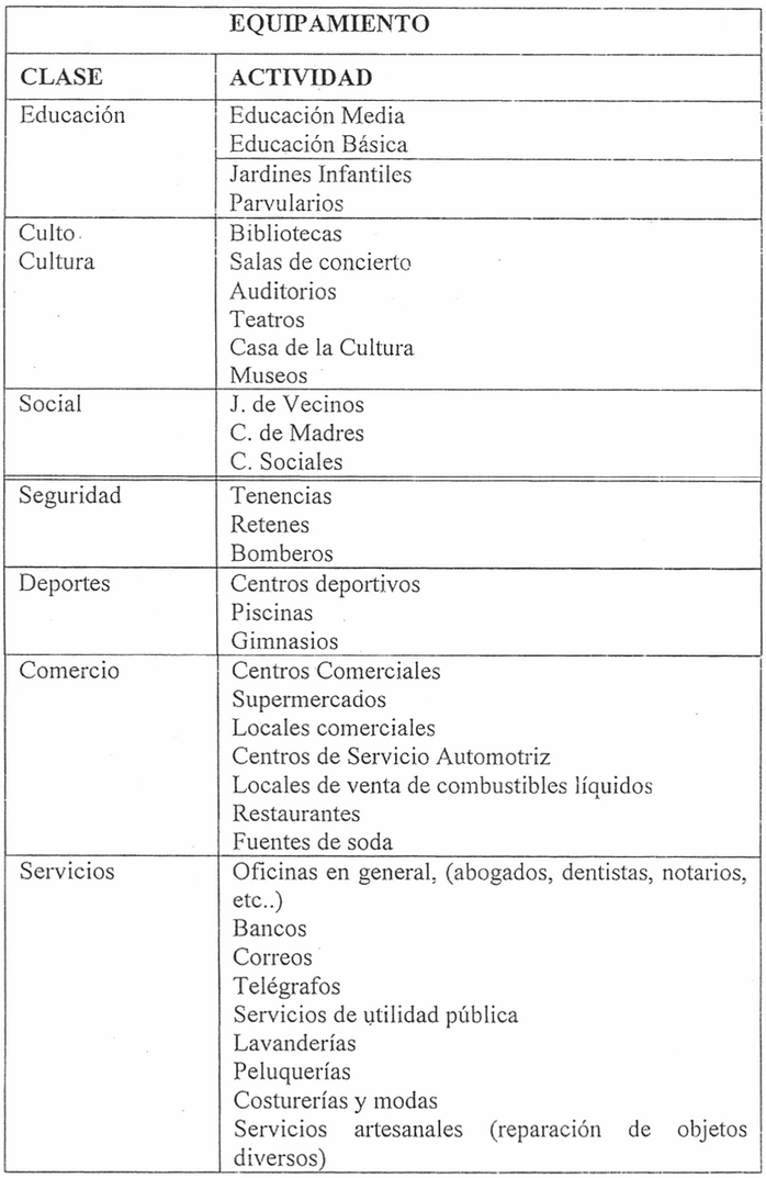 Todos aquellos que no estén expresamente permitidos o que no cumplan con las exigencias establecidas para los usos restringidos. En forma explícita se prohíbe el uso de suelo equipamiento.