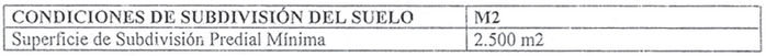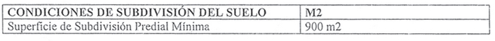 La superficie predial mínima establecida en el siguiente cuadro, es una norma urbanística aplicable solo a los procesos de urbanización del suelo, relativos a los casos en que se solicite la subdivisión, loteo o división afecta de un determinado predio.
