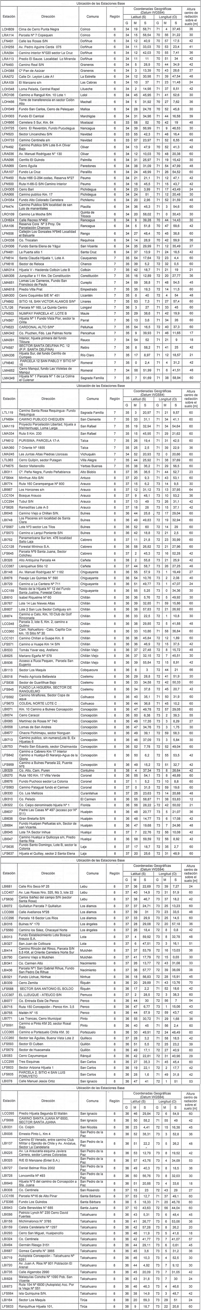 1. Autorízase a la concesionaria a instalar, operar y explotar las siguientes estaciones base, según se indica a continuación.