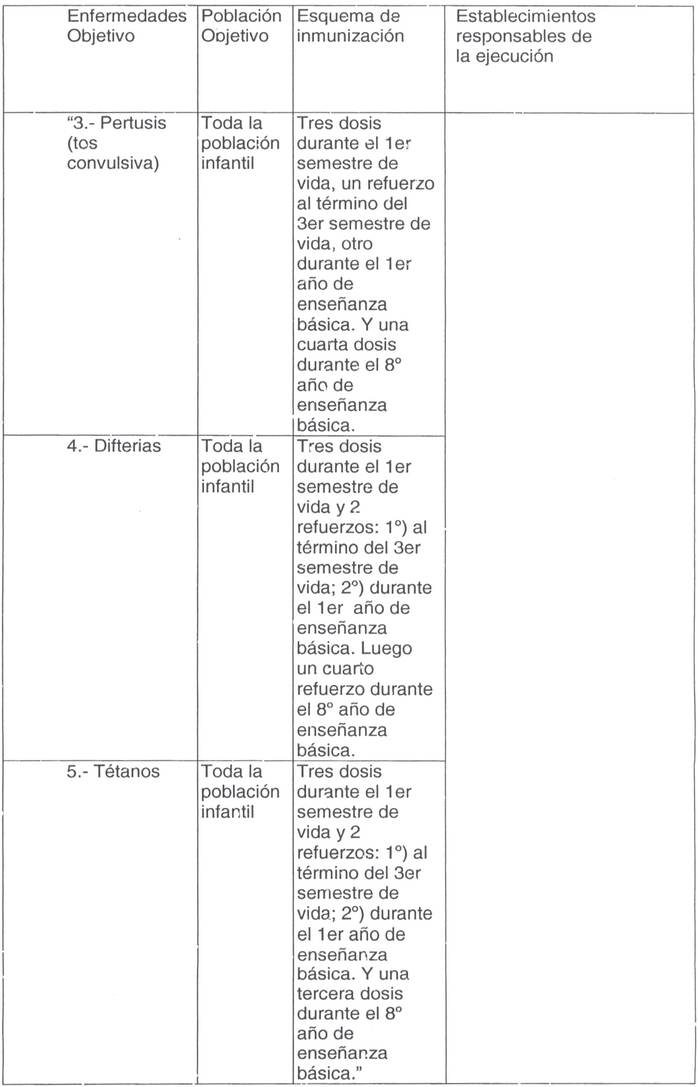 7.- Que, lo solicitado por el Jefe de Planificación Sanitaria, mediante su memorándum B54/ Nº 069 de 21 de enero de 2013, respecto a la incorporación de la vacunación contra: Difteria, Tétano, Pertusis, en la vacunación programática de niños que cursan 8º año básico, por cuanto se plantea la necesidad de inmunizar con dpaT (acelular) a la población adolescente en el período antes mencionado, con la finalidad de disminuir la mortalidad en menores de seis meses.