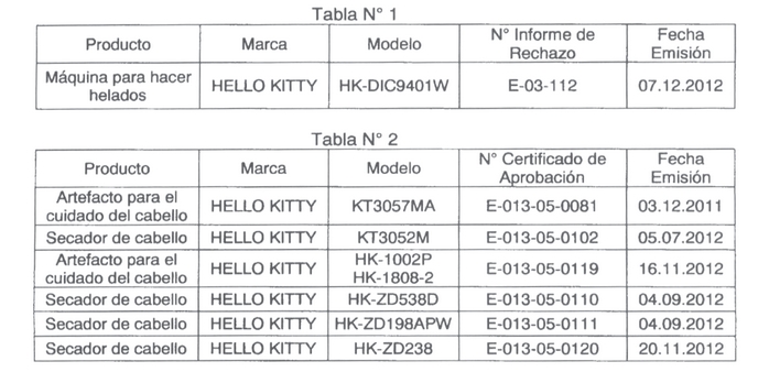 4. Que esta Superintendencia, con fechas 09.01.2013 y 10.01.2013, detectó la comercialización de productos rechazados (Tabla N° 1) y productos certificados (Tabla N° 2), los cuales contravienen la norma IEC 60335-1, en relación a lo indicado en el punto 2 del presente documento.