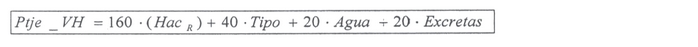 Se considerará como puntaje de vulnerabilidad habitacional aquel que resulte de la siguiente ecuación: