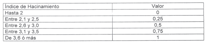 HacR: Corresponde al índice de hacinamiento del núcleo familiar del postulante, según la siguiente clasificación: