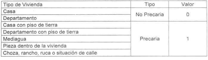 Tipo: Corresponde a la variable Tipo de Vivienda de la Ficha de Protección Social o el instrumento que la reemplace, de la cual forma parte el núcleo familiar del postulante, según la siguiente clasificación: