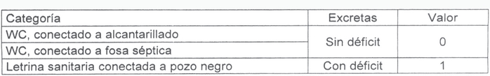 Excretas: Corresponde a la variable sistema de eliminación de excretas de la Ficha de Protección Social o el instrumento que la reemplace, de la cual forma parte el núcleo familiar del postulante, según la siguiente clasificación: