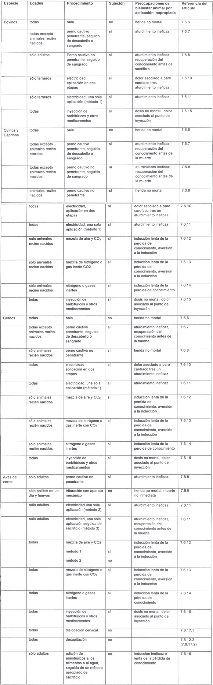 Métodos de matanza descritos en los artículos 7.6.6 a 7.6.18.