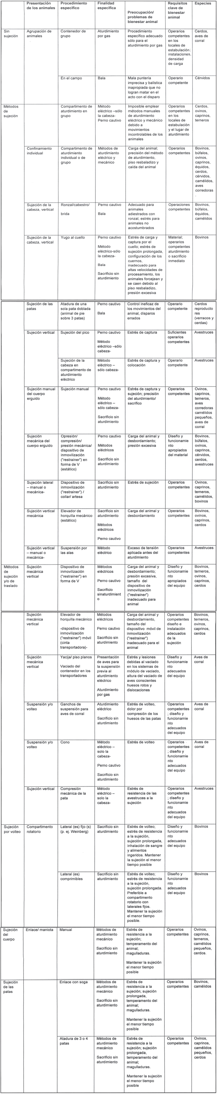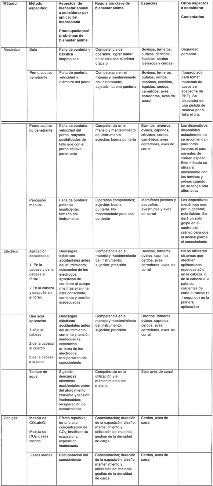 Los métodos se describen en el siguiente orden: mecánico, eléctrico y por gas, y no en el orden recomendado desde el punto de vista del bienestar animal.