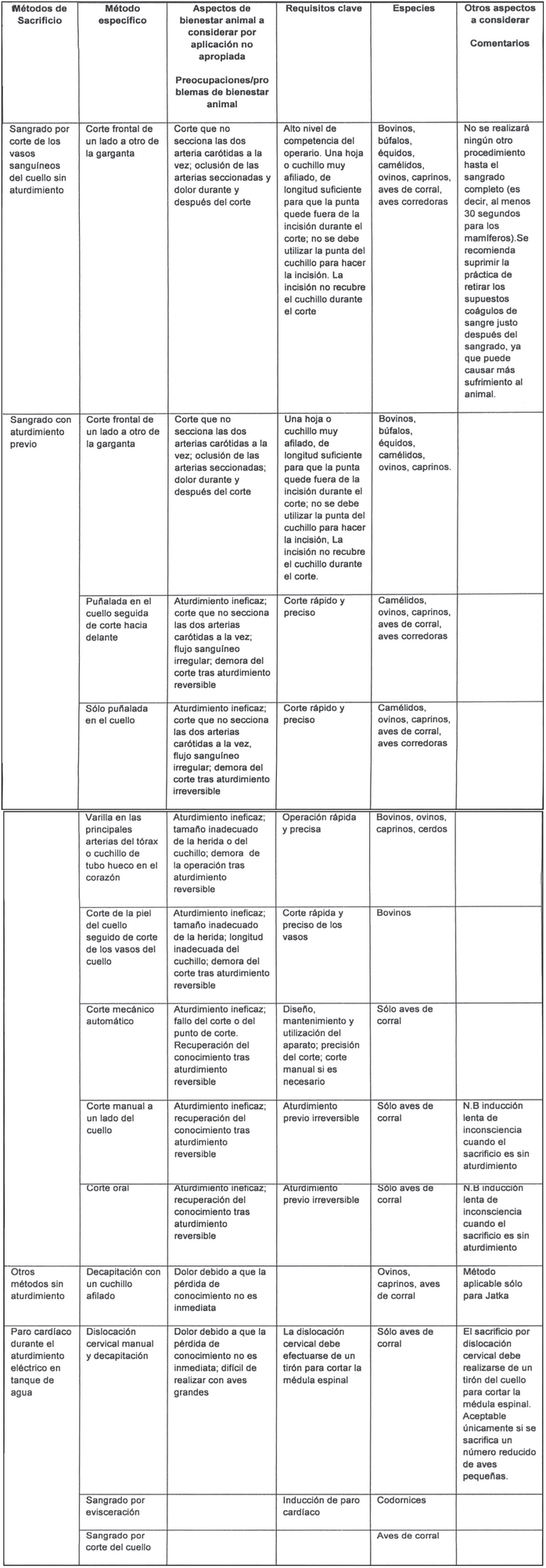 Métodos aceptables de sacrificio y de los problemas conexos de bienestar animal