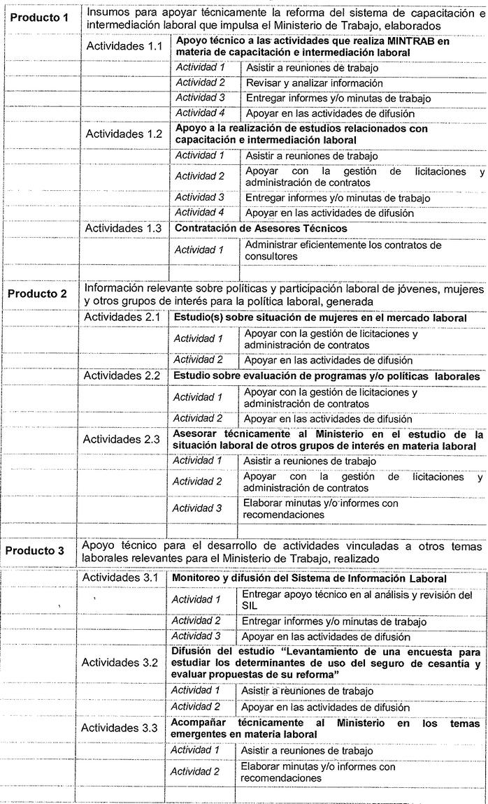i) Ofrecer asistencia técnica del más alto nivel en áreas de carácter estratégico para el Ministerio, tales como la reforma integral del sistema de capacitación e intermediación laboral, prestando asesoría técnica en la modernización del Servicio Nacional de Capacitación y Empleo (SENCE), tanto en el diseño y evaluación de programas de capacitación e intermediación, como en aspectos relacionados con el desarrollo de capacidades y la reforma institucional.