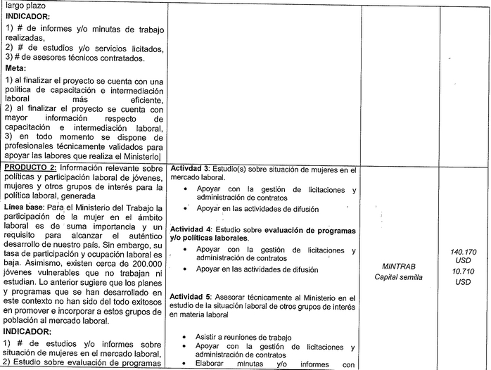 16. El presente proyecto busca continuar el trabajo desarrollado con el Ministerio del Trabajo desde 2008, y su objetivo general es contribuir a fortalecer y perfeccionar las políticas laborales, de capacitación e intermediación, con miras a reducir la pobreza y la desigualdad a través del aumento de empleo y la productividad, así como de la introducción de las mejores prácticas laborales.