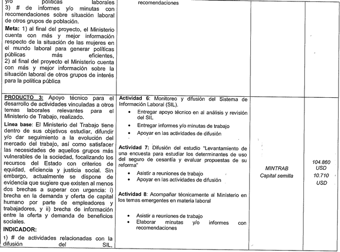Para lograr tales objetivos el proyecto busca apoyar las actividades del Ministerio del Trabajo a través de: