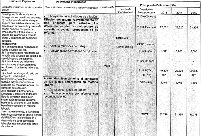 1. El Programa de las Naciones Unidas Para el Desarrollo (PNUD) trabaja desde el año 2008 con el Ministerio del Trabajo y Previsión Social (en adelante, Ministerio del Trabajo o MINTRAB). Durante este tiempo, el PNUD se ha consolidado ante el Ministerio como un apoyo técnico confiable en acompañar y entregar capacidades a sus equipos técnicos.