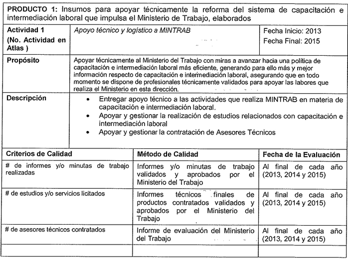 1. Insumos para apoyar técnicamente la reforma del sistema de capacitación e intermediación laboral que impulsa el Ministerio de Trabajo, elaborados.