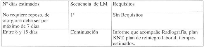 .Rango de días de reposo laboral estimado como adecuado para favorecer la recuperabilidad y el reintegro laboral.