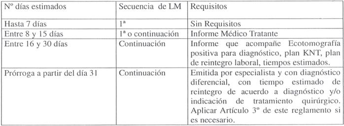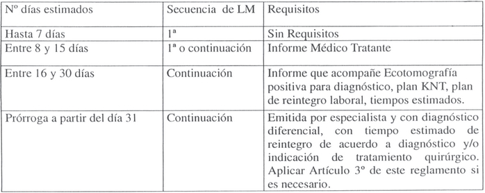 Artículo 4º.- Establézcanse las siguientes guías clínicas referenciales relativas a exámenes, informes y antecedentes que deberán respaldar la emisión de licencias médicas, en relación a los Grupos de Patologías y patologías que se indican a continuación: