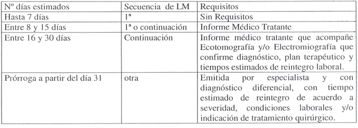 Rango de días de reposo laboral estimado como adecuado para favorecer la recuperabilidad y el reintegro laboral.