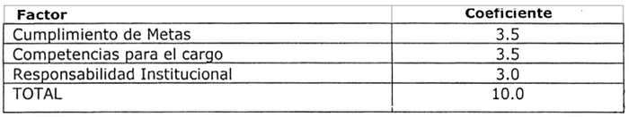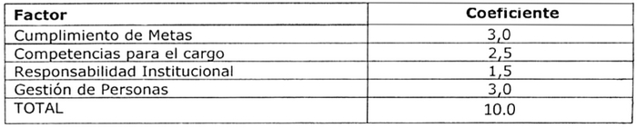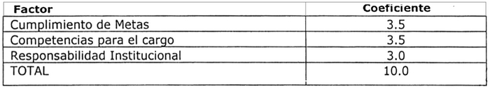 1. Factores de Ponderación para Directivos, Profesionales, Fiscalizadores y Técnicos con funciones de jefatura: