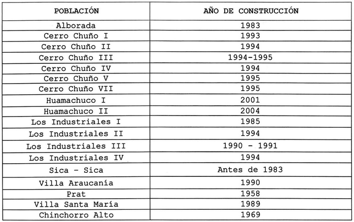 Lo anterior corresponderá a las poblaciones "Huamachuco", "Araucanía", "Sica Sica", "Alborada", "Industriales 0", "Industriales 1", "Industriales 2", "Industriales 3" e "Industriales 4".