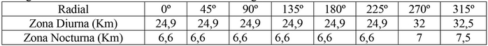 - Diagrama de radiación horizontal de acuerdo a la siguiente tabla: