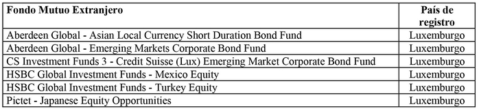 .2. Aprobar las cuotas de los siguientes fondos mutuos extranjeros: