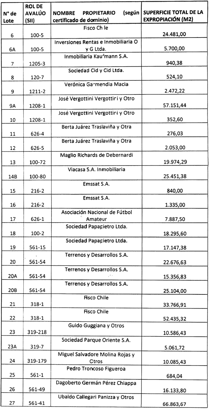 . Superficie total aproximada inmuebles a expropiar: 443.637 metros cuadrados.