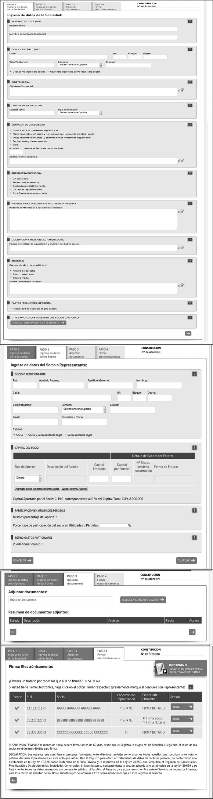 El Registro es único, rige en todo el territorio de la República, es público, gratuito, reside en el sitio electrónico y es administrado por el Ministerio de Economía, Fomento y Turismo. En el Régimen Simplificado es posible constituir formalmente una Persona Jurídica conectándose a su sitio web e ingresando los datos de la Persona Jurídica a crear y de los Socios, en un formulario electrónico dispuesto para ello.