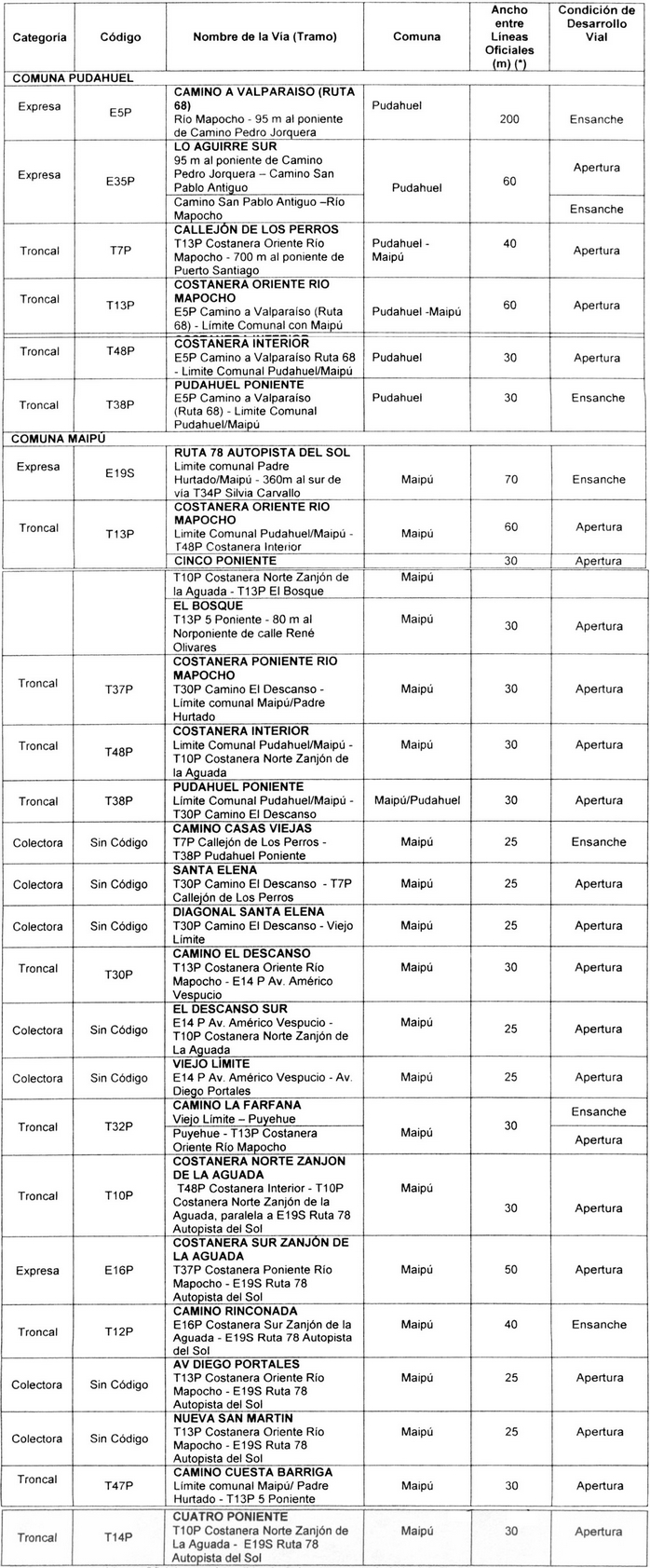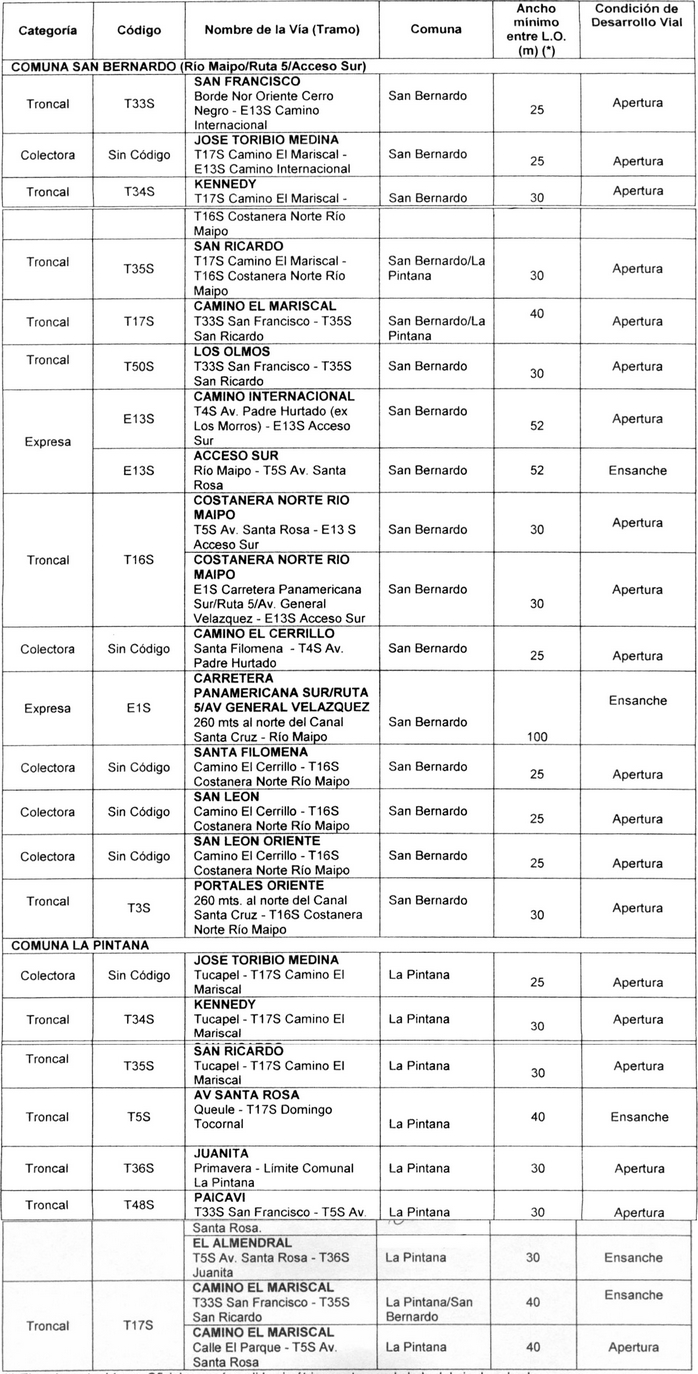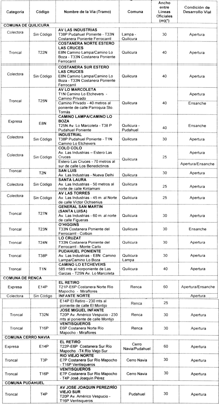 En tanto se actualicen los Planes Reguladores Comunales de las comunas de Quilicura, Renca, Cerro Navia, Pudahuel, Maipú, San Bernardo y La Pintana, los usos de suelo permitidos, así como las normas urbanísticas para estas zonas serán las siguientes: